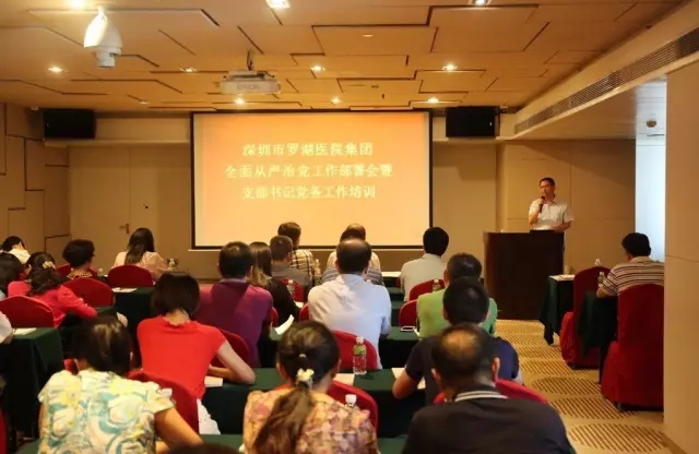 本次会议邀请罗湖区委(政府)办(区直机关工委)党务科陈俊奇讲师为集团各支部书记做党务工作培训。集团党委副书记、纪委书记林志文同志主持会议,集团各成员单位党委书记、组织委员及党支部书记参加大会。罗湖区卫生计生局党委副书记、纪委书记蒋顺遂同志及罗湖医院集团党委书记孙喜琢同志到会指导。