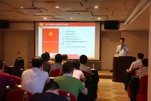 随后,陈俊奇讲师以《党支部工作实务》为题,分别从党组织设置和换届选举、发展党员、党的组织生活、组织关系管理、党费缴纳共五个方面为大家讲解党支部的具体工作要点和注意事项。